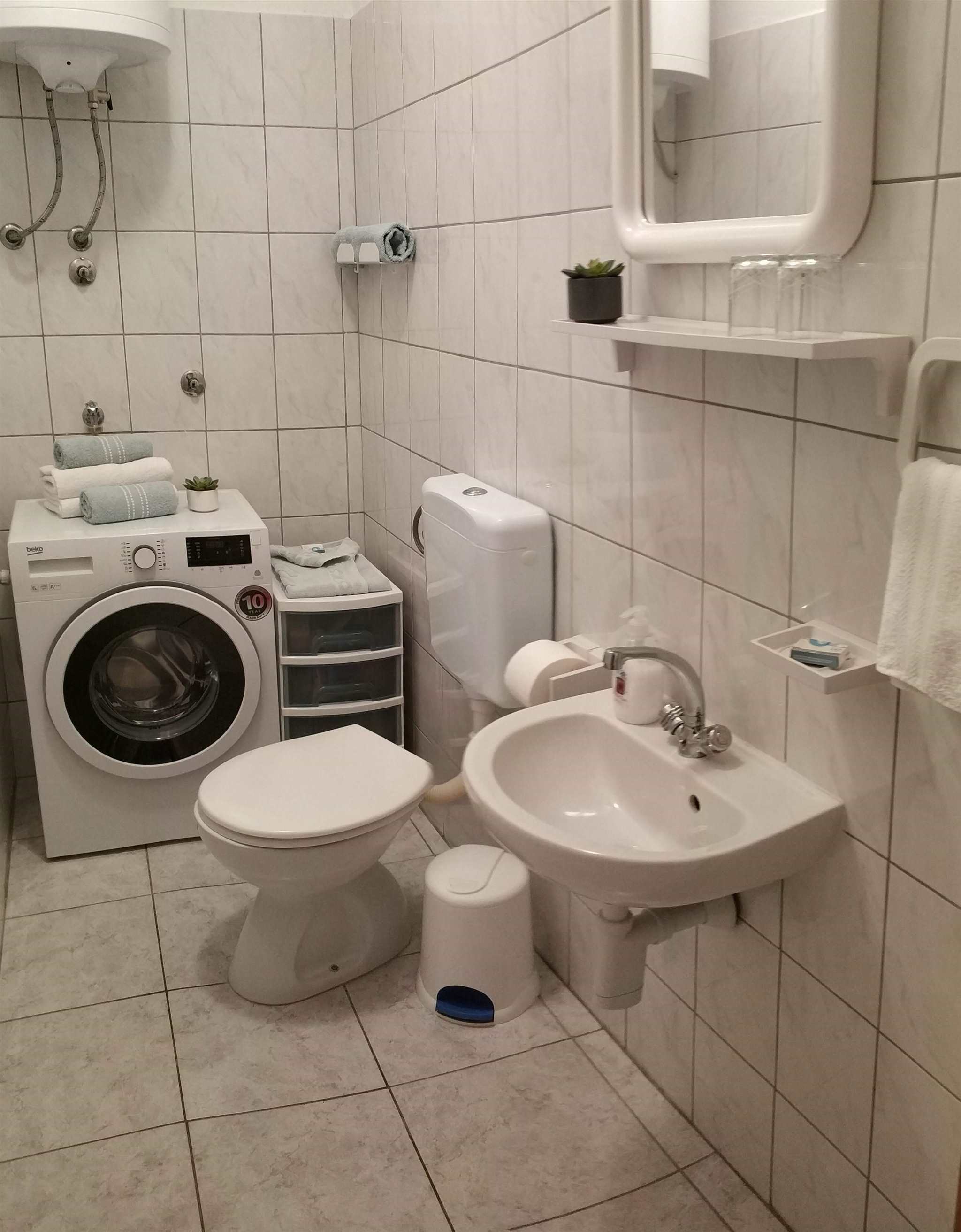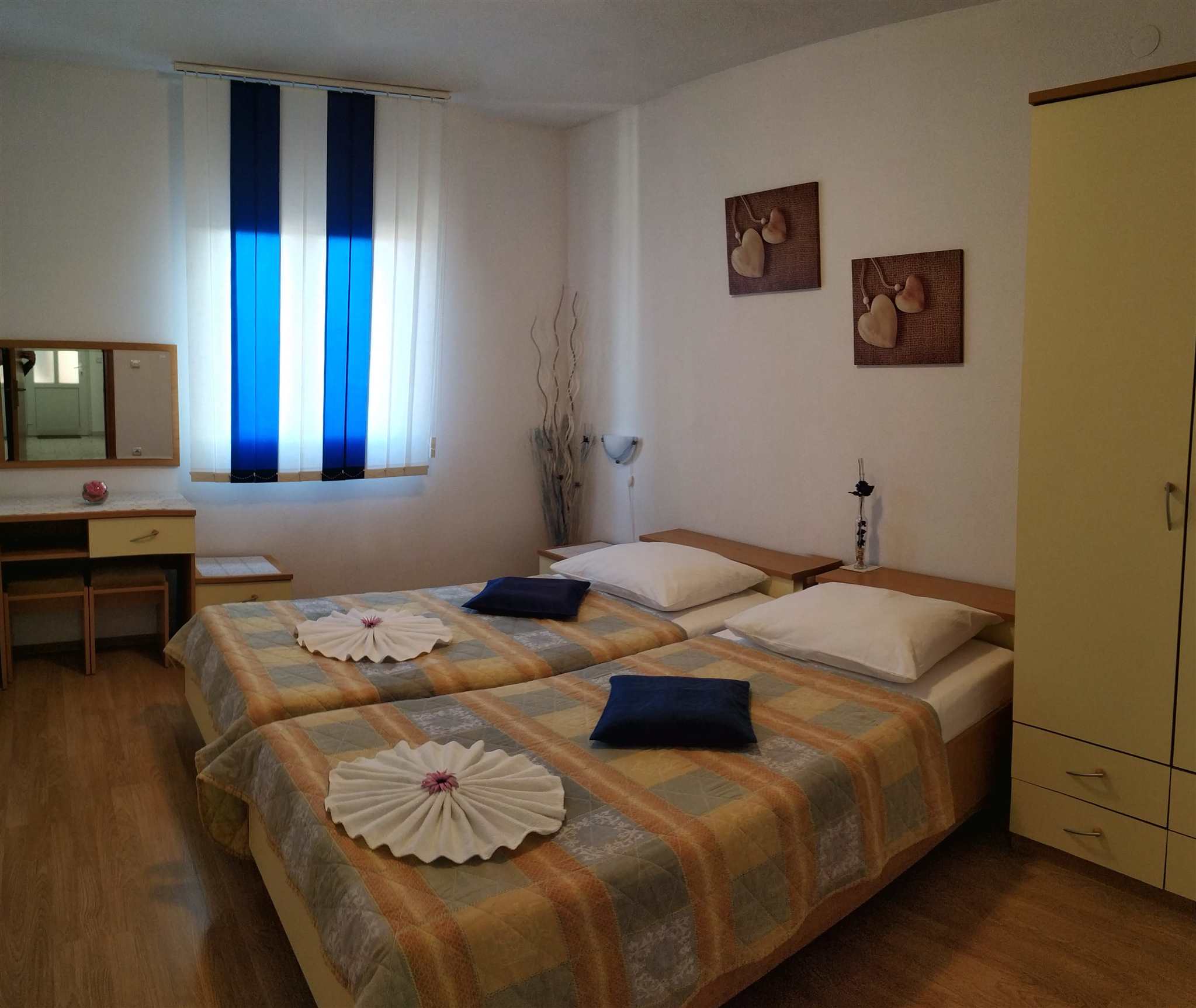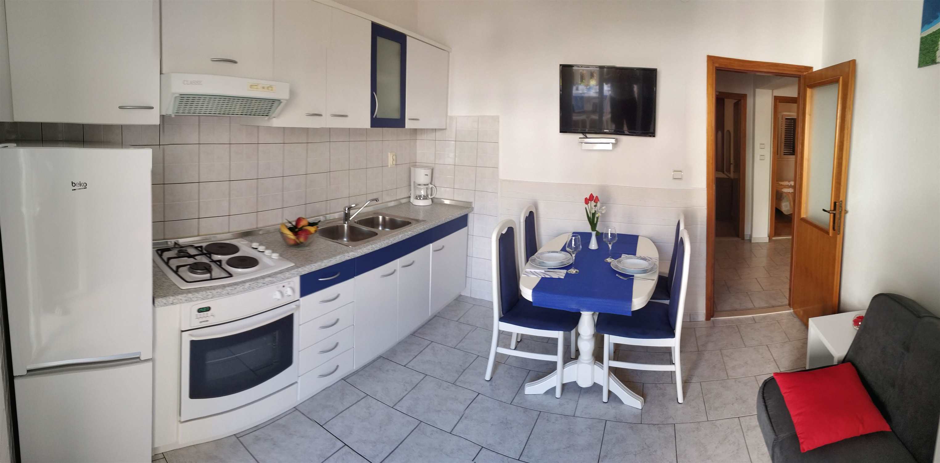 The apartment is located on the second floor of our house in Bol on the island of Brač. The size is 55 m2 and has a terrace of 7 m2 overlooking the hill surrounding Bol, a balcony of 3 m2 overlooking the sea and the island of Hvar. The apartment consists of two rooms, one with a double bed and one with 2 single beds (beds can be connected), kitchen with living room, bathroom and toilet and spacious lobby.